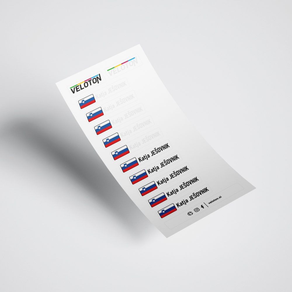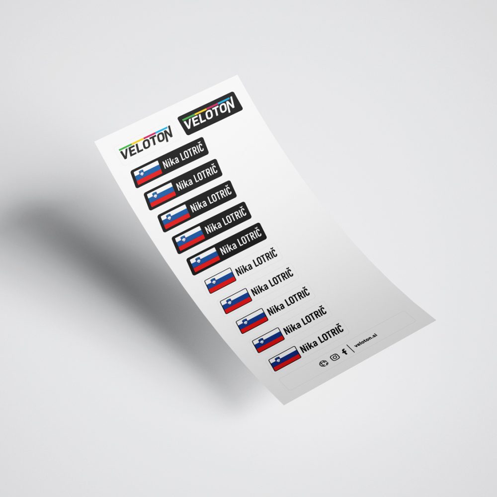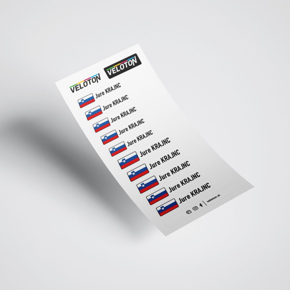 Personalizirane bele nalepke z napisom in zastavo po vaši želji.