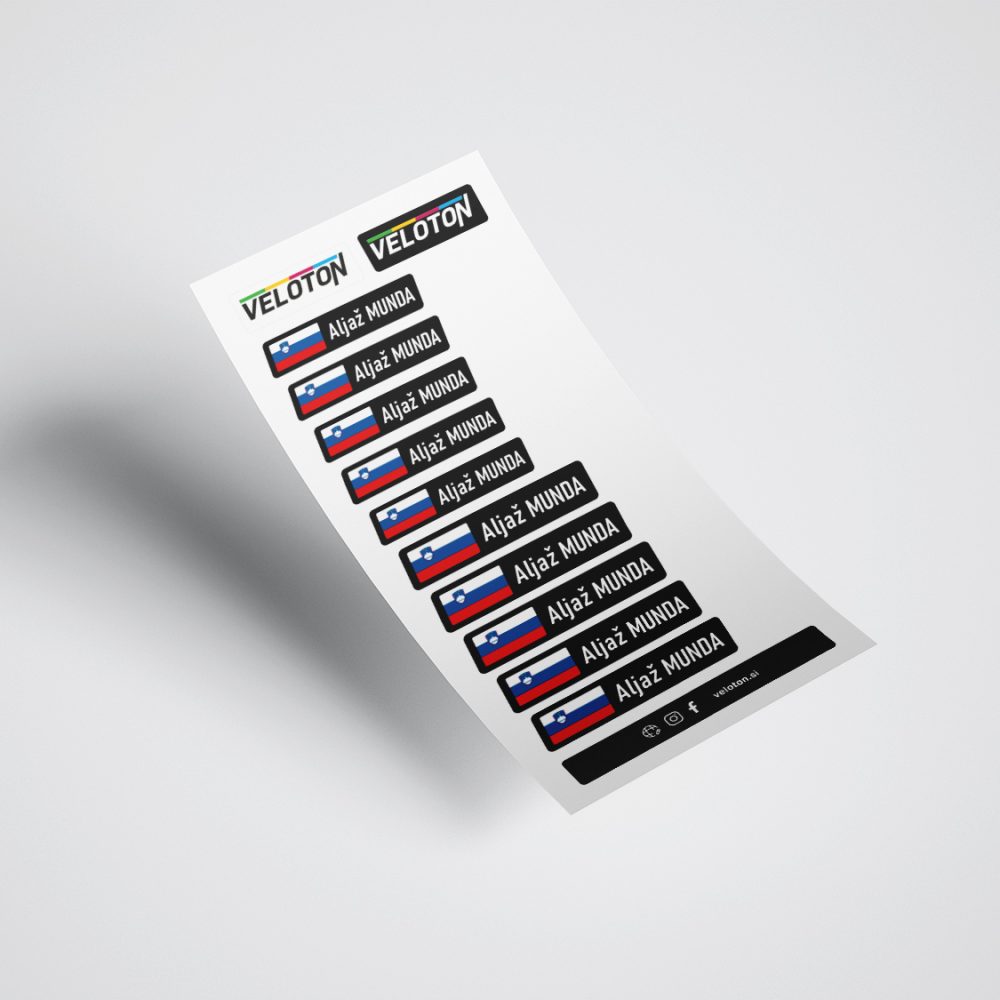 Personalizirane črne nalepke z napisom in zastavo po vaši želji.